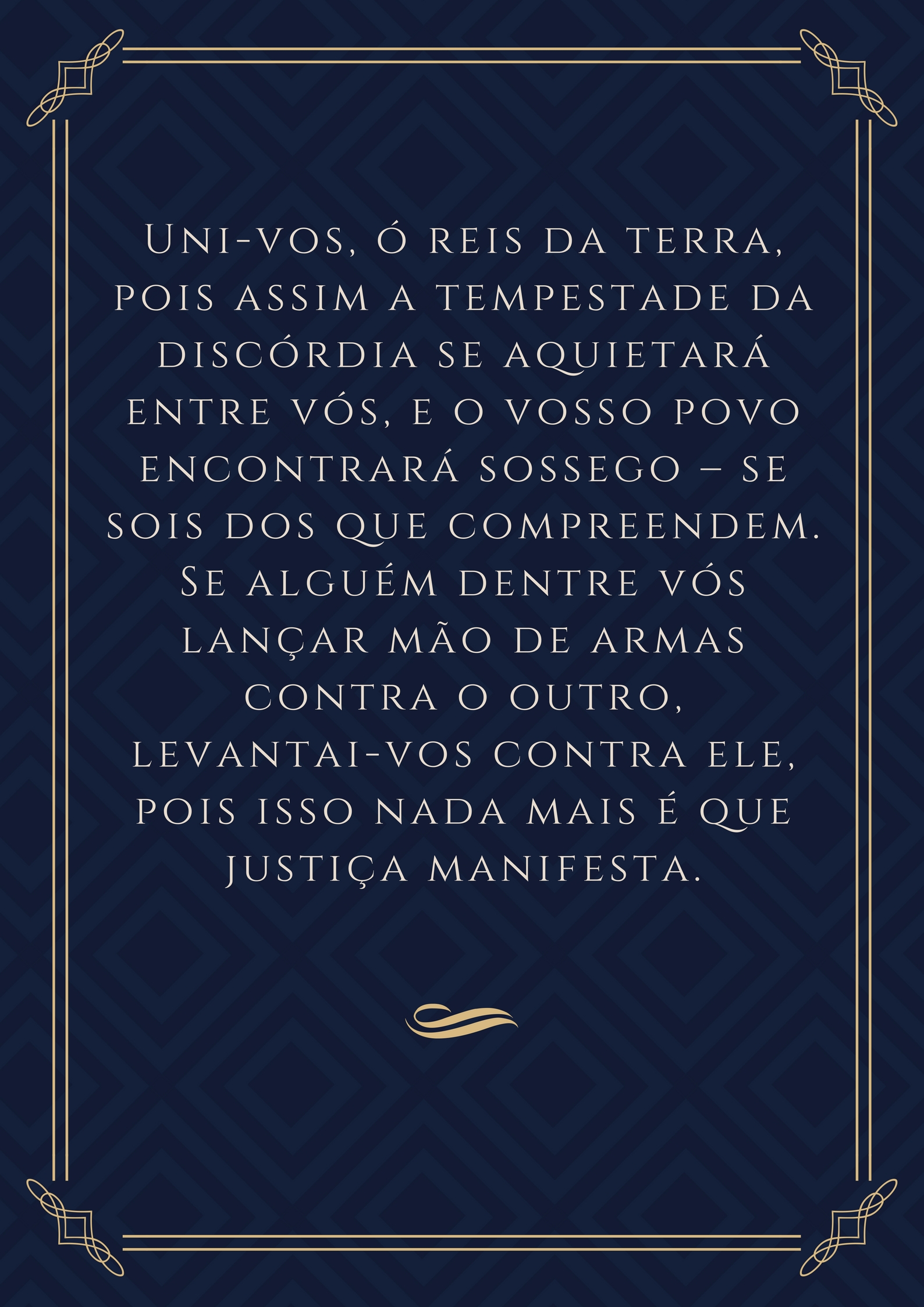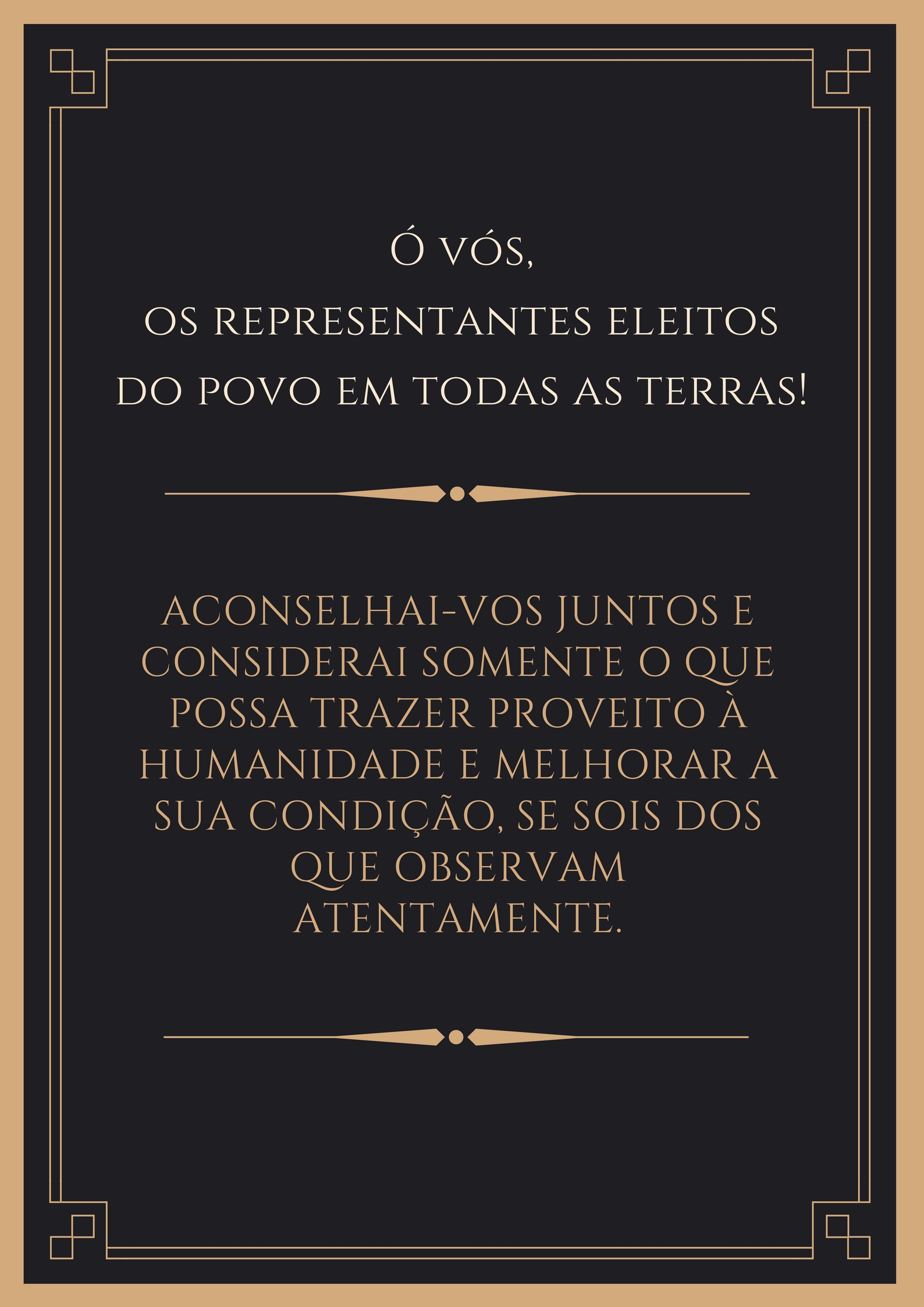 devem cessar e todos os homens devem tornar-se como uma família. … Que não se vanglorie quem ama o seu próprio país, mas sim quem ama o mundo inteiro …’”