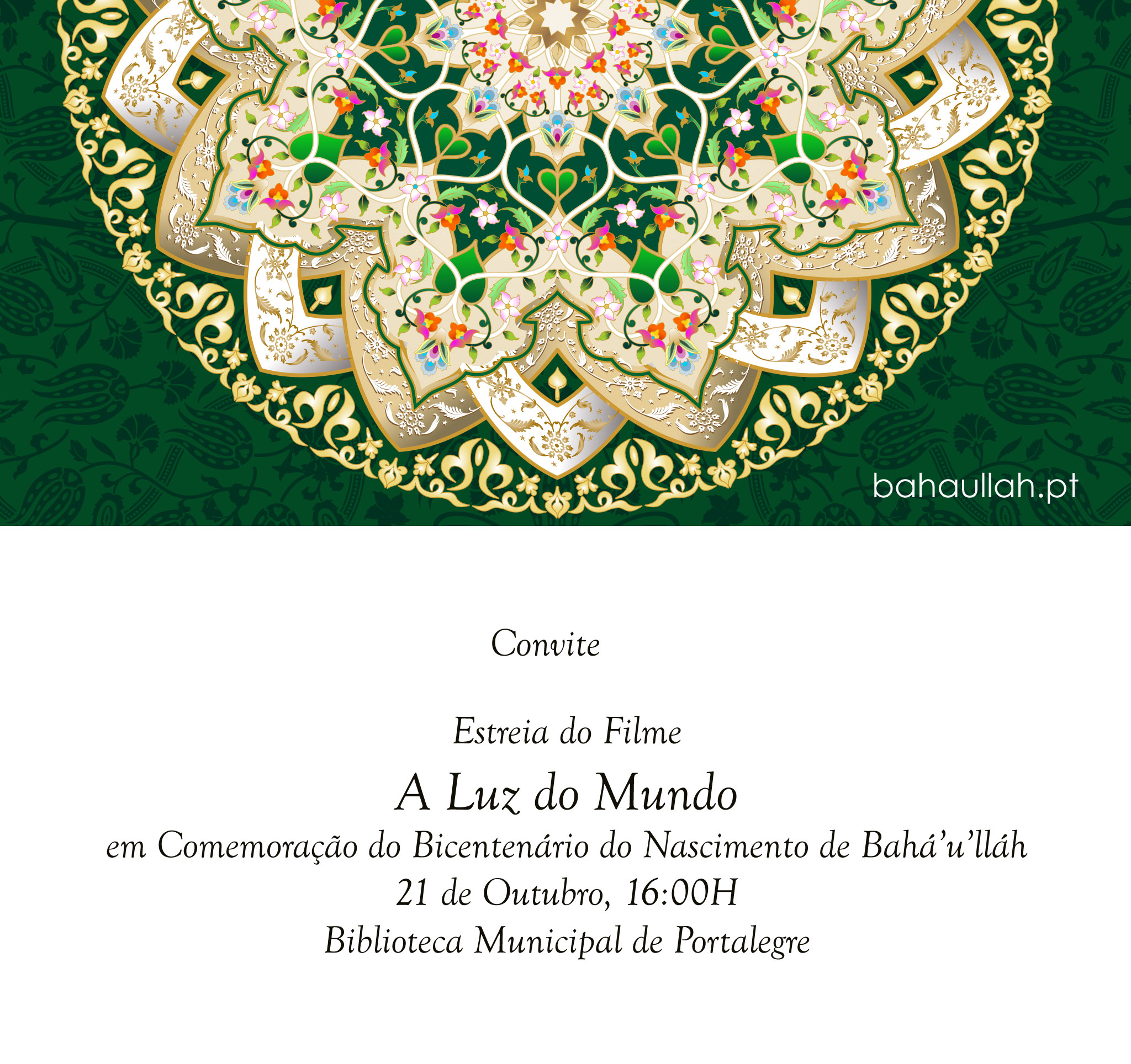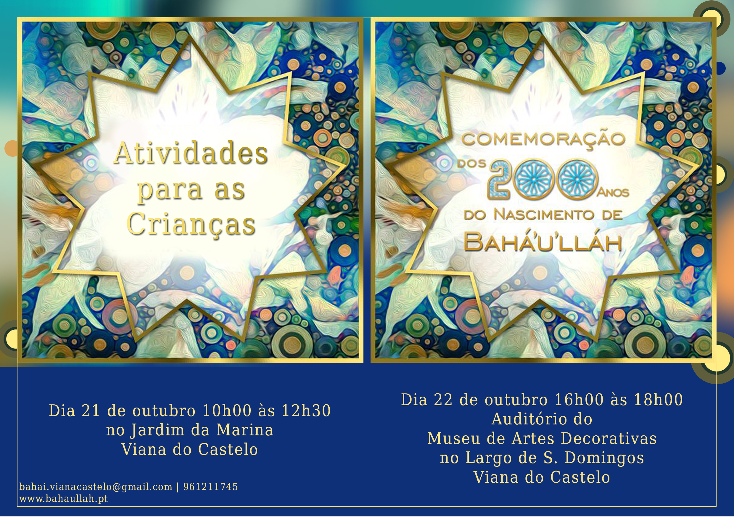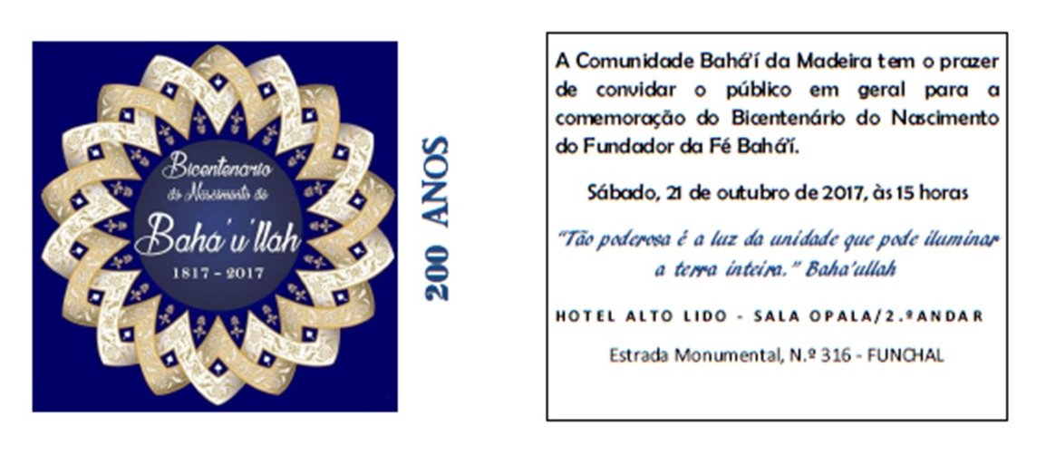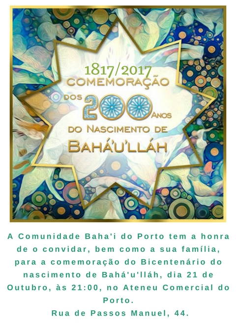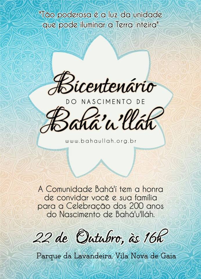 Também em Portugal, inspirados pela vida e pelos ensinamentos de Bahá’u’lláh, várias localidades do país irão celebrar o 200º aniversário do Seu nascimento, nos próximos dias 21 e 22 de outubro.